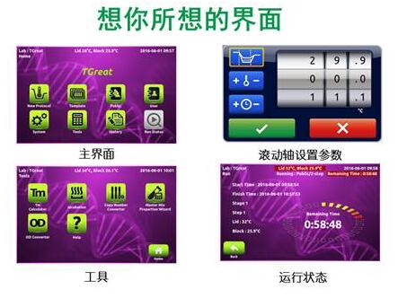 TIANGEN全新打造的新型TGreat梯度PCR儀采用了成熟的帕爾貼技術精準控制升降溫度,多重溫度探針檢測系統,確保每臺儀器穩定可靠運行。每一個加熱孔都經過精確計算,升溫更快,溫控更精準,保證實驗穩定進行。時尚的外觀設計,簡直就是PCR界的盛世美顏!配備電容觸屏,界面簡單,直觀,人性化,需要哪里點哪里。甚至可以使用手機端APP遠程監控,隨時掌握實驗動態。不但顏值高,操控還超級貼心,配備了Tm計算器,拷貝數以及MasterMix制備工具,簡直就是業界良心!溫度時間采用了滾輪控制,柔和的手感,時尚的操作體驗!