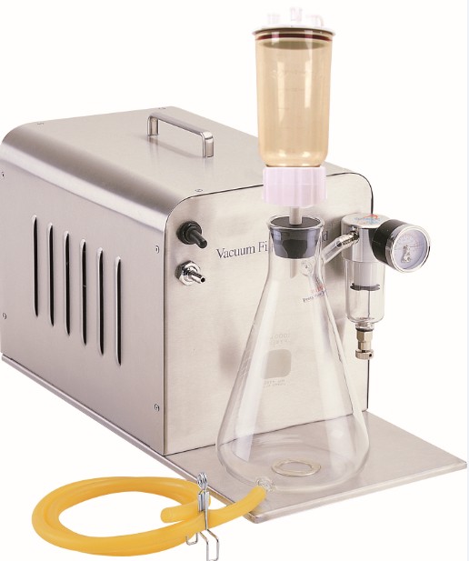 實(shí)驗(yàn)室真空過濾裝置一般包括無油抽濾泵(主機(jī)部分)、集液瓶和過濾漏斗三個主要部分。漏斗作為整套儀器的重要組成部分,起到固定濾膜、盛裝樣品的重要作用。傳統(tǒng)的抽濾漏斗一般采用不銹鋼或玻璃材質(zhì)制造,玻璃易碎,這種漏斗固定方式一般采用夾具固定,換膜時需要雙手操作一手持濾杯一手持夾具。全新的聚醚砜旋卡式漏斗采用聚醚砜樹脂材料制造,輕便耐摔。旋卡式連接濾杯和濾膜基座的部分,單手即可操作換膜。是一種全新改良式的過濾漏斗。
