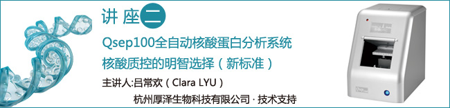本講座講座將分享Qsep100全自動(dòng)核酸蛋白分析系統(tǒng)在核酸質(zhì)控方面的應(yīng)用及優(yōu)勢(shì)。