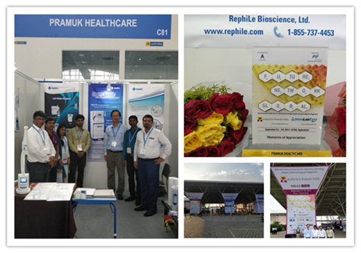 2017年9月21日~ 23日,2017慕尼黑印度海德拉巴分析生化展 (ANALYTICA ANACON INDIA 2017)在印度海德拉巴國際展覽中心舉行。印度地區與樂楓合作的經銷商Pramuk,在展會上展出了樂楓的產品,包括樂楓三大產品線:實驗室純水系統、密理博純水系統兼容耗材、樣品前處理針頭式過濾器,還特別介紹了新推出的大系統Supper-Genie純水工作站。雖然之前已有不少印度用戶在使用樂楓的產品,但這次還是樂楓第一次在印度展會上正式亮相,引來眾多業內人士的關注和欣賞。他們對樂楓這一中國品牌及產品表現出的強烈興趣,也讓樂楓對未來在印度市場上的發展潛力充滿信心。