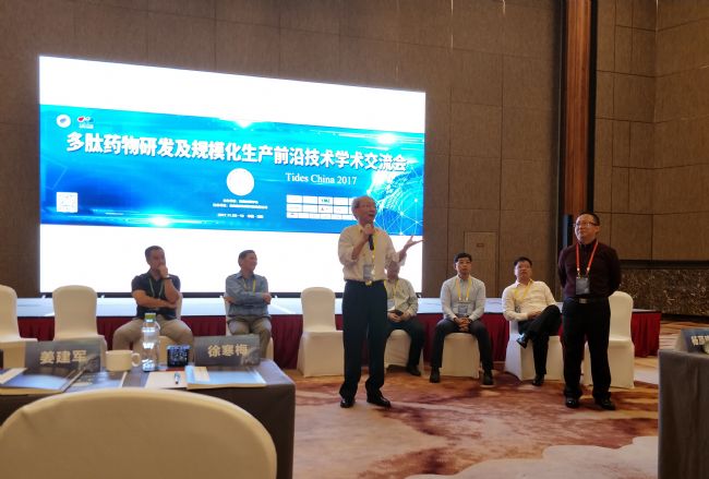 參會人數達到180人,參會嘉賓來自國內一線多肽生產、研發的專家、學者。在此次會議中納微科技有限公司的黃駿雄博士(業界前輩)應邀做了“高效置換色譜原理及其在藥物分離純化中的應用”報告,為大家帶來國際領先的前沿技術與大家分享。