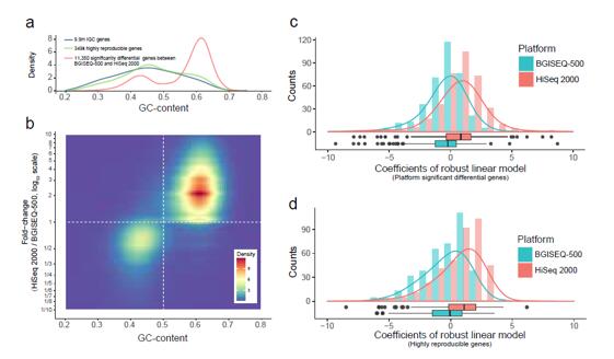 圖3. BGISEQ-500與HiSeq2000平臺間差異基因的比較