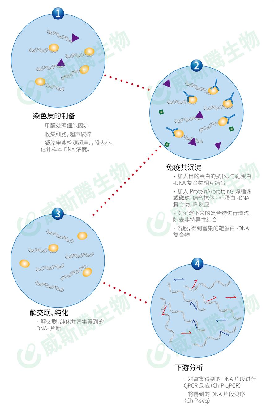 染色質(zhì)免疫共沉淀技術(shù)主要應(yīng)用于驗證及探尋體內(nèi)環(huán)境中,蛋白質(zhì)和DNA的直接相互作用,旨在探索特定蛋白質(zhì)在DNA上的特定結(jié)合序列,常在研究轉(zhuǎn)錄調(diào)控以及組蛋白修飾中被應(yīng)用到。