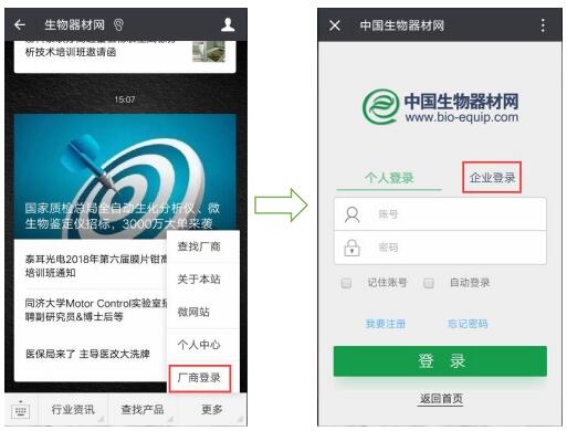中國生物器材網開通微官網企業用戶登錄功能通知