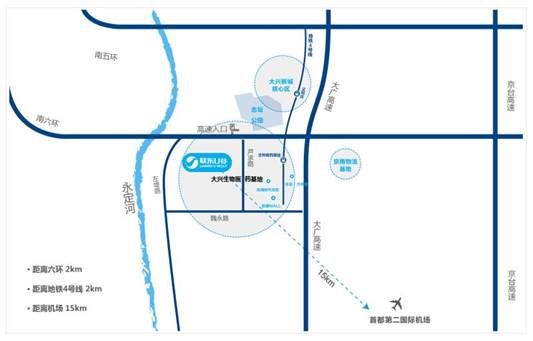 聯東U谷•北京生物醫藥科技園,位于大興新城西南部,中關村科技園大興生物醫藥產業基地內,項目北側距南六環2.6公里;東鄰京開高速2.7公里;驅車到達大興國際機場車程僅17分鐘,地鐵4號線貫穿于園區周邊。