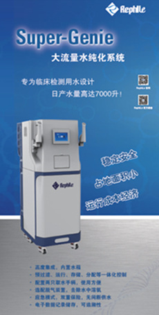 本次展會,樂楓將攜Super-Genie智能純水工作站參加。該系統專為臨床檢測應用設計,高度集成,日產水量高達7000升。尤其是無間斷供水和脫氣裝置的設計,完美配合生化分析儀的使用要求。