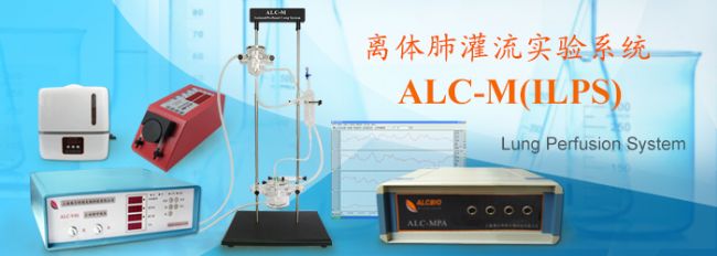 - 離體肺灌流實驗系統由ALC-M(ILPS)離體肺灌流實驗系統(裝置) 、ALC-V8動物呼吸機、ALC-B6恒流泵、ALC-CWB恒溫循環水槽與ALC-MPA離體肺功能分析系統等組成。