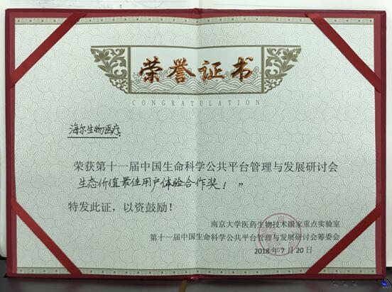 海爾獲生命科學研討會"生態(tài)價值最佳用戶體驗合作獎"