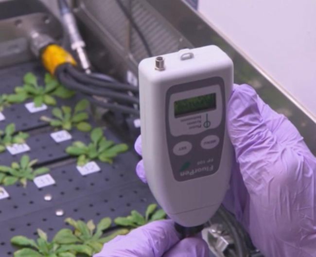 上圖:美國國家航空航天局(NASA)利用探頭式FluorPen葉綠素熒光儀測量研究太空植物生長適應性;
