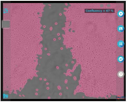 細(xì)胞成像系統(tǒng)InCellis細(xì)胞融合度的應(yīng)用,提供了最好的可選的方案去追蹤劃痕實(shí)驗(yàn)的結(jié)果。劃痕之后,隨著細(xì)胞的生長,細(xì)胞的融合度增加,所以細(xì)胞的融合度變化與細(xì)胞的遷移速率相關(guān)。
