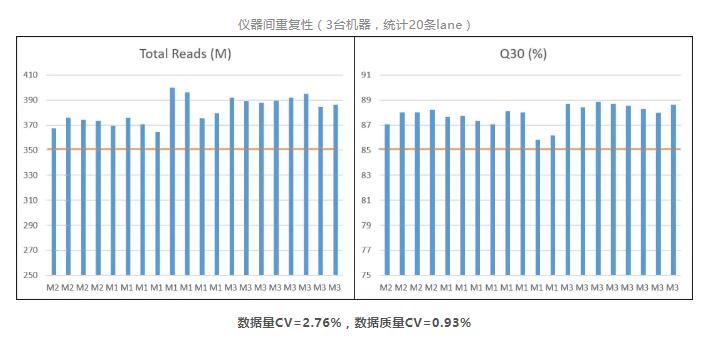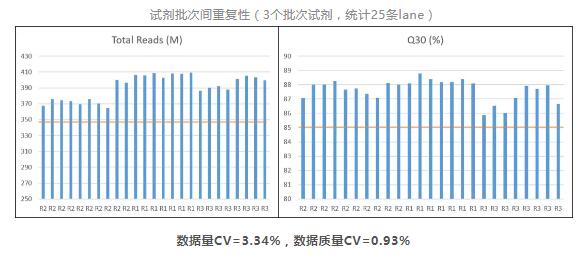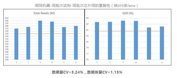 經得起各種重復性實驗,Total reads穩定超過350M/lane,Q30穩定保持85%以上