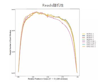 MGISEQ-2000平臺與N測序平臺的B建庫試劑盒的隨機性表現相當,3’端的覆蓋度比N測序平臺上A建庫試劑盒的更好。