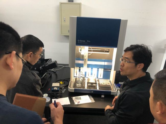 2018年10月18日,國內第三臺八通道耗散型石英晶體微天平QSense PRO,在哈爾濱工業大學安家,并成功安裝運行良好。來自瑞典百歐林的安裝工程師趙工對儀器進行了認真仔細的安裝調試,并和我司畢業于瑞典皇家工學院的應用科學家王敏博士一起對相關研究操作人員進行了詳細的使用培訓。