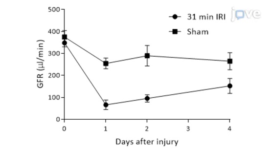 對不同處理組實驗對象的腎功能(GFR值表征)恢復狀況進行監測