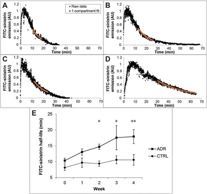 Medibeacon大小鼠腎功能實時監測系統是用于臨床前監測腎小球濾過率(mGFR)的裝置。該系統允許研究人員計算和跟蹤動物的腎臟功能隨時間的推移的連續變化,監測過程中動物仍保持清醒的活動狀態。使用我們的MediBeacon設備以及熒光示蹤技術可以擺脫采血,收集尿液,測試分析等繁瑣的步驟,使臨床前研究更加簡單易操作。