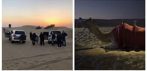 展會現場如火如荼,展會之外我們也沒閑著,早就聽說迪拜是旅游者的圣地,購物者的天堂,展期加上前后2天共5天,團隊為我們制定了周密的游玩攻略,從美食到美景再到購物中心,一應俱全!第一站當然是阿聯酋乃至整個阿拉伯最受歡迎的民間趣味運動---沙漠沖沙,乘坐著專業的沖沙越野車,伴著落日的余暉,在廣袤的沙漠上體驗著熱情的司機給我們呈現的一出出飆車大技,伴隨著身體因失重而凌亂的造型以及耳邊團員們超高分貝的尖叫聲,那叫一個驚心動魄,彼時彼刻我們仿佛已跟沙漠融為一體;驚險刺激過后回歸平靜,我們轉站波斯灣公共沙灘欣賞世界上最高的七星級酒店-帆船酒店,雖然僅能遠觀其外貌,但在綿長的波斯灣海水映襯下,顯得格外迷人和神秘!有沙灘有海水必須還有海島,被譽為世界最大的人工島、世界第八大奇跡、6A級旅游風景區的棕櫚島,是我們最好的選擇,錯落有致的棕櫚樹,簇擁著全球最豪華的酒店"棕櫚島亞特蘭蒂斯",風光旖旎,隨手拍一幀便可載入畫冊;