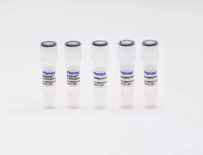 ▪ MonScript™ RTIII All-in-One Mix (with dsDNase) 是針對(duì)一鏈 cDNA 合成開發(fā)出的一個(gè)操作更為簡(jiǎn)便的系統(tǒng),包含所有一鏈 cDNA 合成反應(yīng)所需組分,反應(yīng)中僅需加入 RNA 模板和水。預(yù)混液中的逆轉(zhuǎn)錄酶是MonScript™ RTase III(REF: RN05002),該酶去除了 RNase H活性,最高反應(yīng)溫度為 55℃,大幅提升了逆轉(zhuǎn)錄效率和對(duì)復(fù)雜模板(高 GC 比例或大量二級(jí)結(jié)構(gòu))的耐受性,特異性更好、產(chǎn)率更高、更容易獲得全長(zhǎng) cDNA。該試劑盒中包含了dsDNase,能夠徹底去除基因組 DNA 污染,保證下游定量結(jié)果的真實(shí)可靠。