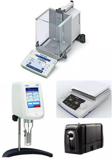 現場展示的有:美國博勒飛粘度計、瑞士梅特勒托利多電子天平,水分儀、美國愛色麗色差儀、德國邁卡徠克均質乳化設備、加熱磁力攪拌器。