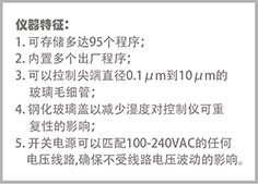 PUL-1000程控水平拉制儀是一款微處理器控制的四步程序水平控制儀,可以拉制用于細胞內信號記錄,膜片鉗研究、微量灌注及顯微注射的玻璃毛細管或微電極。