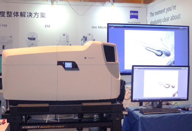 Celldiscoverer 7從德國(guó)直接運(yùn)到了展位,在大會(huì)上首次亮相,現(xiàn)場(chǎng)演示斑馬魚(yú)活體成像。