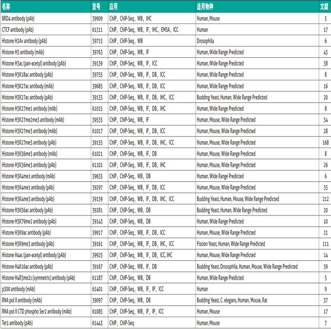 Active Motif 團隊專注于表觀遺傳和基因調控領域20 余年,可為客戶提供完整的表觀遺傳研究解決方案,其表觀遺傳修飾性抗體以其嚴格的ChIP-Seq級別驗證備受業內人士推崇。