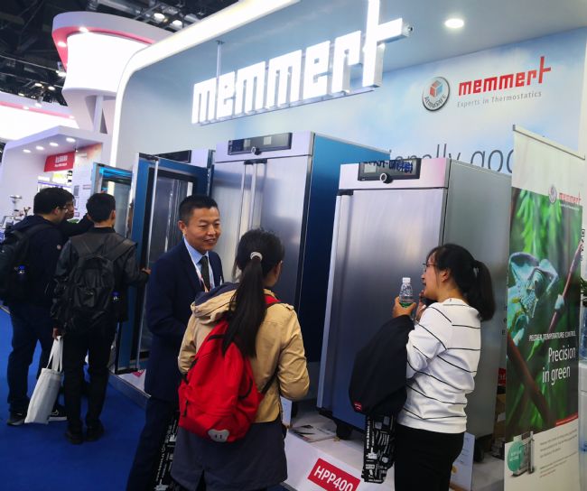Memmert秉持“至尊品質,追求卓越,永不妥協”理念,準備了十數臺的龐大樣機展示計劃,是展會上樣機規模與單體尺寸最大、系列最全的箱體展商,能夠基本體現Memmert現有產品體系中的主要特點。