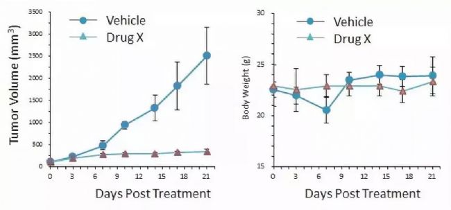 結果顯示:與對照組相比,Drug X顯著抑制了三陰乳腺癌PDX模型鼠體內的腫瘤生長。