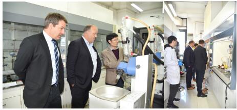 簽約儀式結(jié)束后,中心組織參觀了合作實驗室,李必杰副教授向大家詳細介紹了中心目前在實驗室的一些科研項目,并向IKA反饋學(xué)生和老師的使用體驗。甚至專門針對旋轉(zhuǎn)蒸發(fā)儀的某個功能使用體驗進行了現(xiàn)場交流討論。