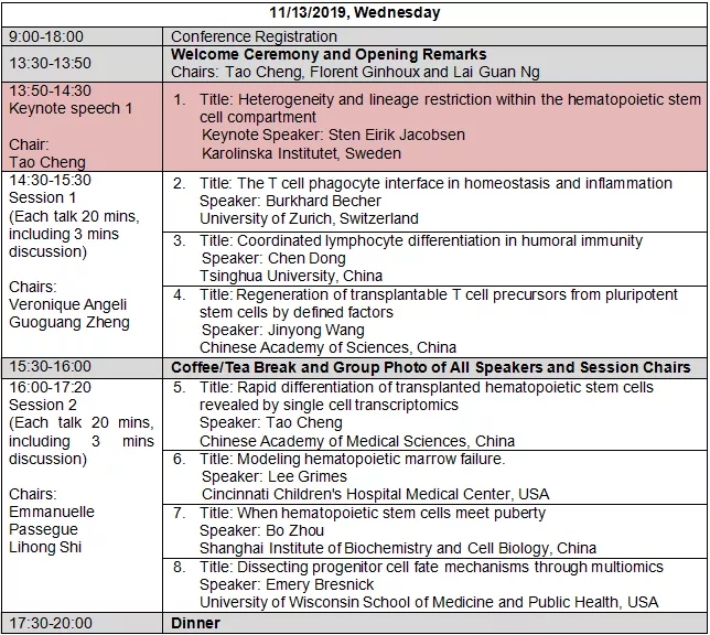 首屆天津國際血液和免疫研討會(huì)(The convergence of hematology and immunology, CHI)即將于2019年11月13-15日在天津舉行。大會(huì)主席由中國醫(yī)學(xué)科學(xué)院血液病醫(yī)院(血液學(xué)研究所)程濤教授、新加坡A*STAR研究中心(血液學(xué)研究所兼職教授)Lai Guan NG和Florent Ginhoux教授共同擔(dān)任。
