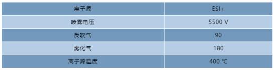 以下參數(shù)以PerkinElmer QSight 210三重四極桿質(zhì)譜儀為例,目標(biāo)化合物質(zhì)譜參數(shù)見(jiàn)表5和表6。