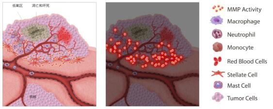 圖1. 基質(zhì)金屬蛋白酶在組織重塑區(qū)域中具有活性,在這種情況下,在腫瘤生長、侵襲和血管形成部位處MMPs高度表達(dá)且具有活性。