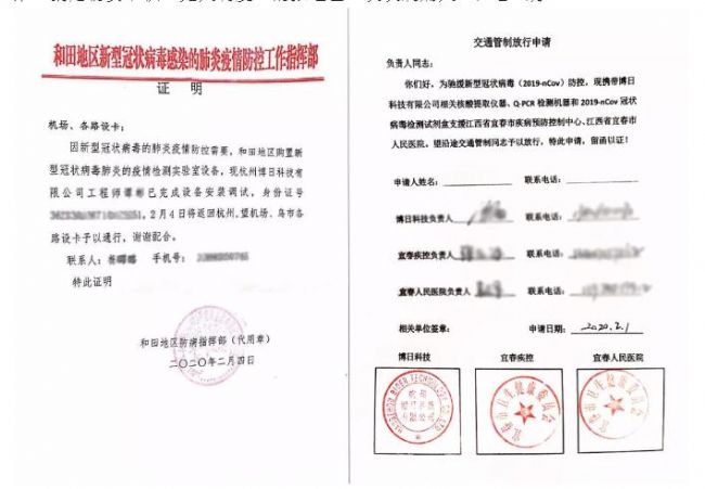 面對困難,博日科技工程師主動請纓,頂著病毒肆虐的風險,堅持貫徹博日“送貨上門、人員上門、技術上門”的方針,針對江西、湖南等臨近省份,聯系需求機構開具證明文件,帶上物資自駕送貨上門;針對廣東、新疆等較遠省份,把試劑儀器裝箱打包,將其作為自身行李托運,定時定點送達需求物資,為疫情防控提供有力保障!