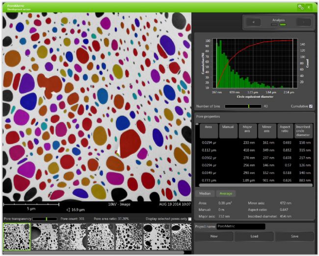 利用電鏡附帶的孔徑分析功能對多孔類樣品進行可視化分析