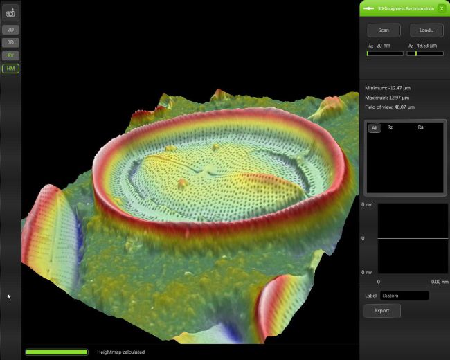 可對樣品進行旋轉從而實現 3D 結構重現,檢測表面粗糙程度