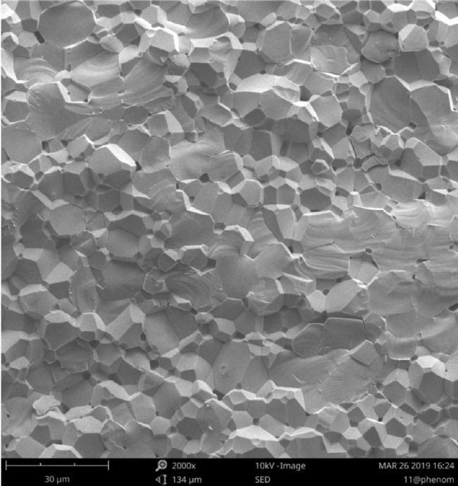 利用掃描電鏡對陶瓷類樣品的形貌結構及成分進行分析與統計。通過背散射像可明顯看到陶瓷的摻雜相,而利用二次電子模式可很好的分辨陶瓷材料表面的晶粒輪廓與微孔。結合能譜分析還可以分析鍍層的厚度與成分。