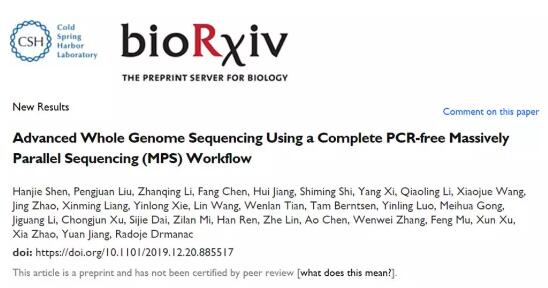 2019年華大智造首席科學家Rade Drmanac博士在AGBT會議上發布了首個基于堿基特異性抗體的測序化學技術CoolMPS™。在此后與全球各地的伙伴合作測試過程中,CoolMPS™ 技術展現了優異的性能和測序質量,包括單端測序400個堿基的能力(bioRxiv,doi:https://doi.org/10.1101/2020.02.19.953307)及其在各種應用中的兼容性。華大智造的合作伙伴將在第20屆基因組生物學技術進展會(AGBT)上分享相關應用情況及信息。