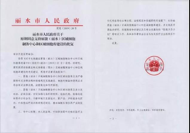 麗水市人民政府對《關(guān)于支持建設(shè)原能(麗水)區(qū)域細(xì)胞制備中心和區(qū)域細(xì)胞庫的請示》的批復(fù)