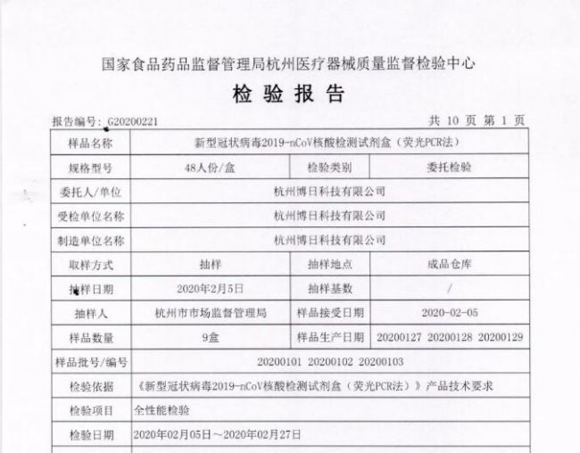 2020年3月5日,杭州博日科技有限公司新型冠狀病毒 2019-nCoV 核酸檢測(cè)試劑盒(熒光PCR法)(英文名:SARS-CoV-2 Nucleic Acid Detection Kit(Fluorescence RT-PCR))獲得了歐盟CE認(rèn)證,成為全球領(lǐng)先擁有CE認(rèn)證的新冠病毒核酸檢測(cè)試劑盒的中國(guó)企業(yè)。