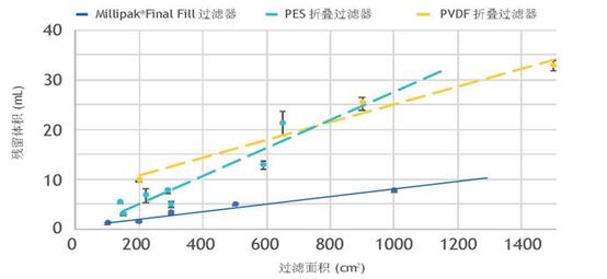 ® Final Fill過濾器的低殘留體積,意味著與傳統(tǒng)的折疊過濾器相比,它能夠有效提高最終產出。Millipak