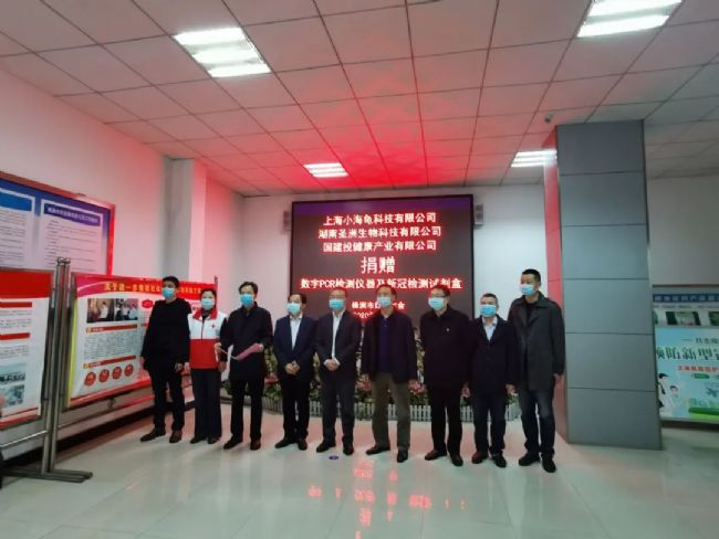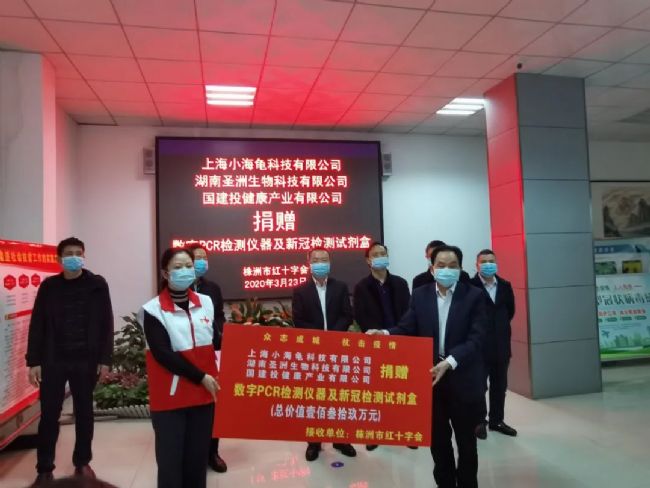 2020年3月23日,上海小海龜科技有限公司聯合湖南圣洲生物科技有限公司(株洲)、國建投健康產業有限公司(長沙)通過株洲市紅十字會向株洲市中心醫院、株洲市疾病預防控制中心分別捐贈全自主研發用于新冠肺炎快速檢測的數字PCR核酸檢測系統BioDigital·華及配套新型冠狀病毒2019-nCoV檢測試劑盒和熒光PCR檢測試劑盒,總價值139萬元。上海小海龜科技有限公司負責人表示,此次捐贈事項是公司積極履行社會責任的一大舉措,希望將自主創新的前沿科技產品快速應用到這場新冠病毒肺炎疫情的戰斗中去。這是上海小海龜科技有限公司在全國首次向市級醫療衛生機構開展的捐贈活動。在這次疫情防控期間,該公司還聯合株洲市中心醫院向湖南省科技廳申報了一項新冠肺炎檢測新技術科研課題。
