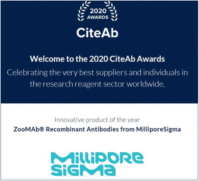ZooMAb™兔單抗在上市半年以來不僅收獲如潮好評,而且在3月2日由抗體界權威檢索網站CiteAb公布的2020年度獲獎清單上,默克ZooMAb™重組兔單抗被CitaAb創始人Dr Andrew Chalmers評價為“絕妙的創新性產品”!