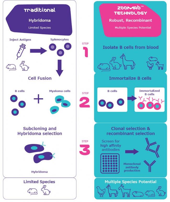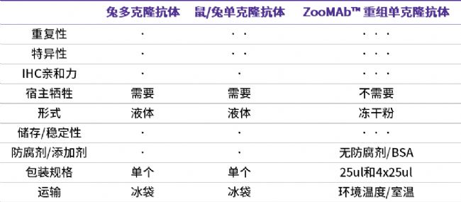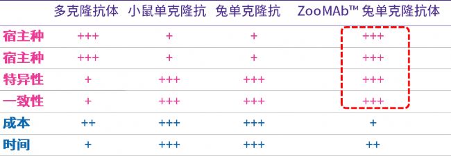 ZooMAb™技術與傳統抗體技術的優勢對比: