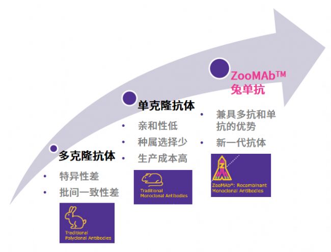 ZooMAb™不僅突破了傳統,只限小鼠、兔、羊、大鼠等種屬限制,具有更廣泛的宿主選擇。針對困難靶標的親和力更高、特異性更高、批次間一致性更強。而生產的時間更短、成本更低,所以也相應更便宜。
