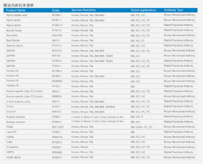 贈送內參抗體清單