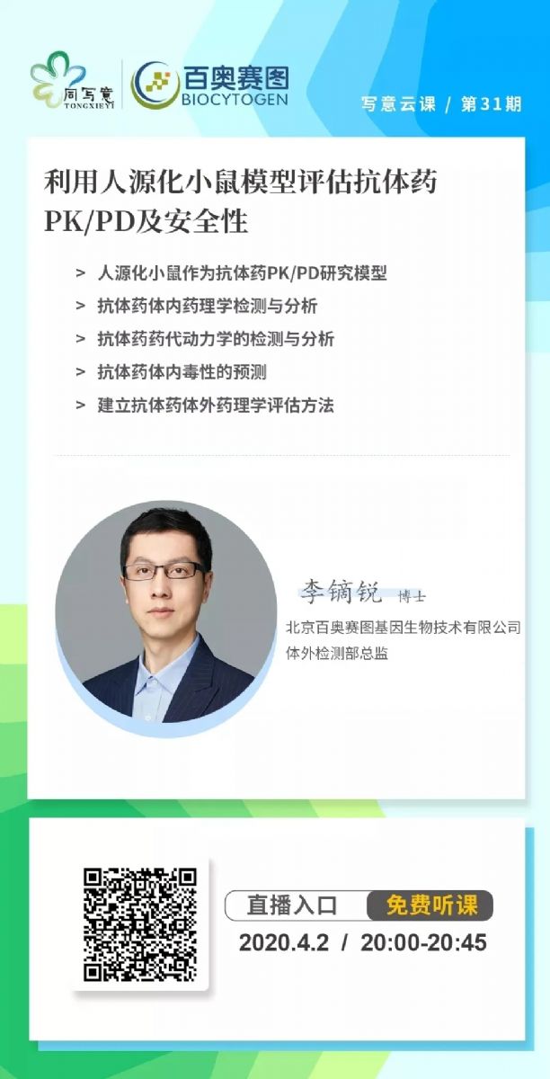 20:00-20:30 利用人源化小鼠模型評估抗體藥PK/PD及安全性