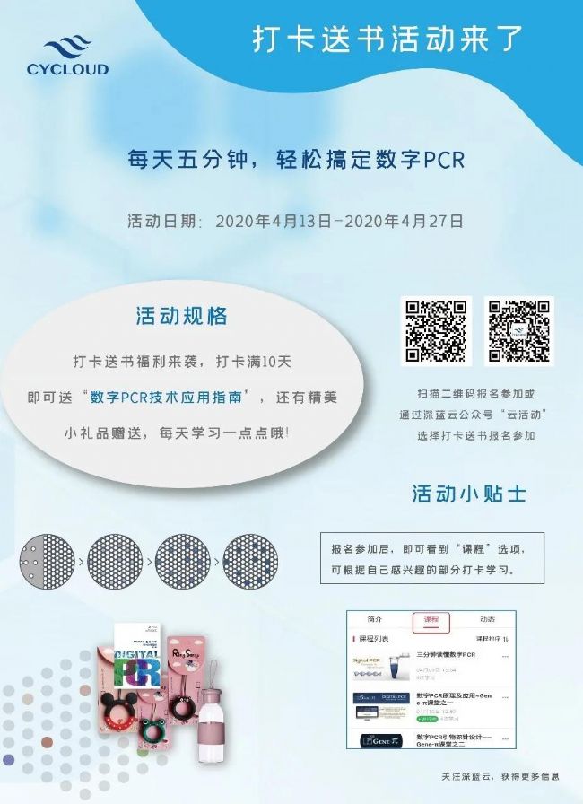 如果您想了解更多有關(guān)數(shù)字PCR的知識(shí),快來(lái)參加深藍(lán)云數(shù)字PCR知識(shí)打卡吧! 每一關(guān)都有您關(guān)注的重點(diǎn),學(xué)到知識(shí)的同時(shí)還有精美小禮品贈(zèng)送哦。