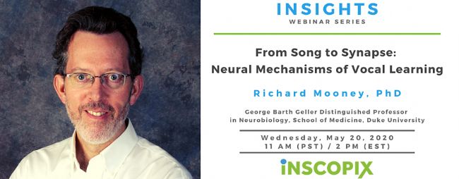 來自杜克大學(xué)(Duke University)的Richard Mooney博士將主講5月21日的Inscopix Insights網(wǎng)絡(luò)研討會,Mooney博士將展示他在自由行為的鳥類歌唱方面所發(fā)現(xiàn)的一些有關(guān)大腦環(huán)路最新研究成果。