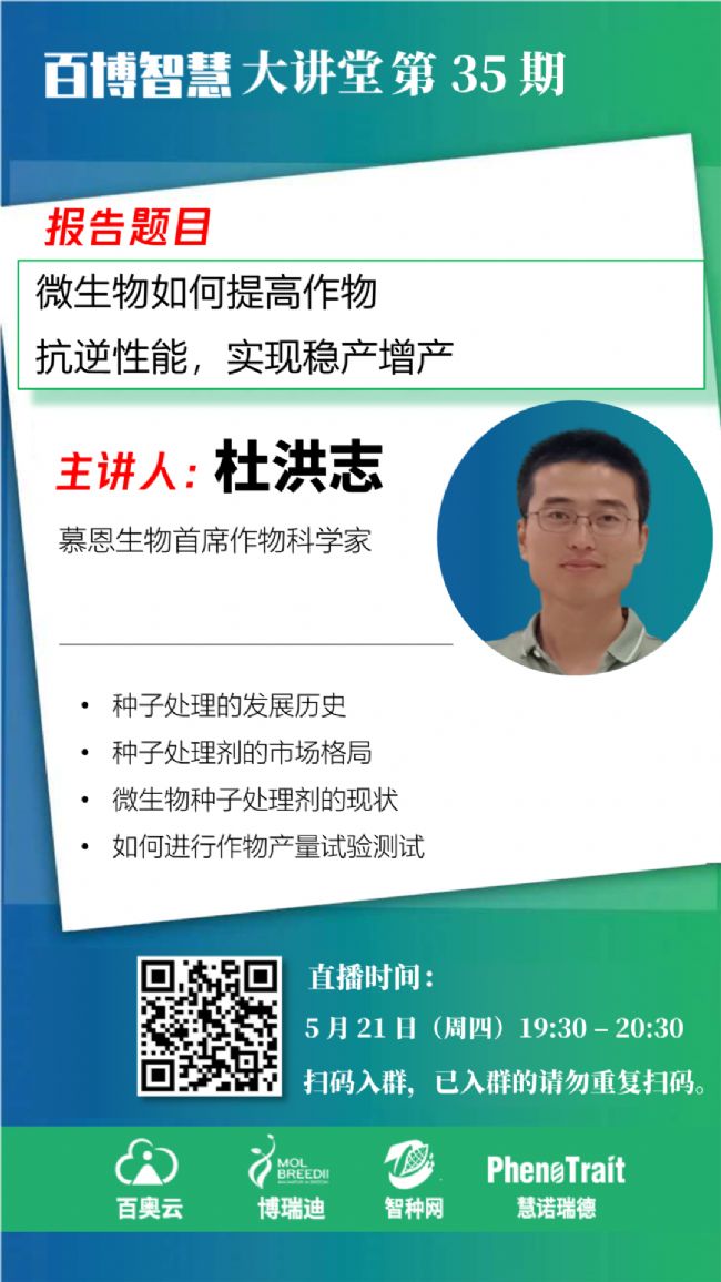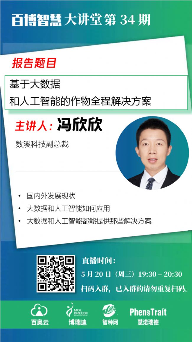 百博智慧大講堂自3月5日開播以來,短時(shí)間內(nèi)引起強(qiáng)烈關(guān)注。在已結(jié)束的直播中,哈佛大學(xué)/北京大學(xué)林澤川博士、中國農(nóng)業(yè)科學(xué)院作物科學(xué)研究所肖永貴博士、東北農(nóng)業(yè)大學(xué)陳慶山教授、金玉良種劉定富董事長、明尼蘇達(dá)大學(xué)梁智凱博士、丹佛斯植物科學(xué)中心李茂博士、中國農(nóng)業(yè)科學(xué)院作物科學(xué)研究所金秀良研究員、北京農(nóng)林科學(xué)院溫常龍博士、華中農(nóng)業(yè)大學(xué)楊萬能教授、百博智慧大講堂四位創(chuàng)始人王冰冰/張嘉楠/葉劍/韓志國、北京農(nóng)林科學(xué)院趙久然研究員、南京農(nóng)業(yè)大學(xué)/法國農(nóng)業(yè)科學(xué)院劉守陽博士、中國科學(xué)院植物生理生態(tài)研究所宋青峰博士、澳大利亞科學(xué)院鄭邦友博士、著名農(nóng)業(yè)評(píng)論員張鑫先生、法國農(nóng)業(yè)科學(xué)院Christophe Salon教授、中國科學(xué)院遺傳與發(fā)育生物學(xué)研究所農(nóng)業(yè)資源研究中心劉秀位研究員、內(nèi)布拉斯加大學(xué)林肯分校葛玉峰副教授、中國農(nóng)業(yè)科學(xué)院作物科學(xué)研究所徐建龍研究員、青島清原農(nóng)冠集團(tuán)研發(fā)總監(jiān)劉丙新先生、北京農(nóng)業(yè)信息技術(shù)研究中心張穎博士、中國農(nóng)業(yè)大學(xué)馬韞韜博士、山東省農(nóng)業(yè)科學(xué)院孫琦博士、中國科學(xué)院遺傳與發(fā)育生物學(xué)研究所田志喜研究員、華南農(nóng)業(yè)大學(xué)郭濤教授、武漢大學(xué)吳賢婷博士、云南省農(nóng)業(yè)科學(xué)院番興明研究員、中國農(nóng)業(yè)科學(xué)院作物科學(xué)研究所徐云碧研究員、華中農(nóng)業(yè)大學(xué)張建博士、明尼蘇達(dá)大學(xué)張峰博士、清華大學(xué)崔偉博士、華盛頓州立大學(xué)張志武教授、北京愛科農(nóng)科技有限公司郭建明等帶來了33場精彩的報(bào)告。