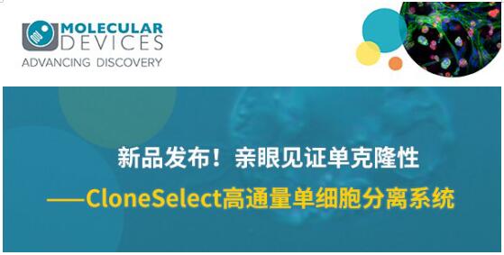 眾所周知,細胞株開發在單抗領域是一個至關重要的環節。現有的細胞株開發流程存在很多弊端,如單細胞分離效率低下、單細胞存活率低以及缺乏單克隆性證據等。近日,Molecular Devices推出了新品CloneSelect高通量單細胞分離系統c.sight及f.sight兩款儀器,它們能提高單細胞分離的效率及活率,且增加單克隆性的可信度。系統采用一次性分離槽設計,省卻清洗驗證程序,降低交叉污染的風險。此外,系統具備除靜電裝置,保證高精度的接種,尤其是針對PCR孔板。