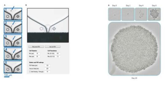 使用專有的噴墨式單向分離槽及微流控技術和智能圖像分析技術將單個活細胞高效地接種至微孔板或PCR板,輕柔而高效地分離單個細胞。使用高分辨率的明場或熒光成像對細胞進行成像和分析,記錄細胞分離過程的連續5張圖像,用于增加單克隆性的可信度。